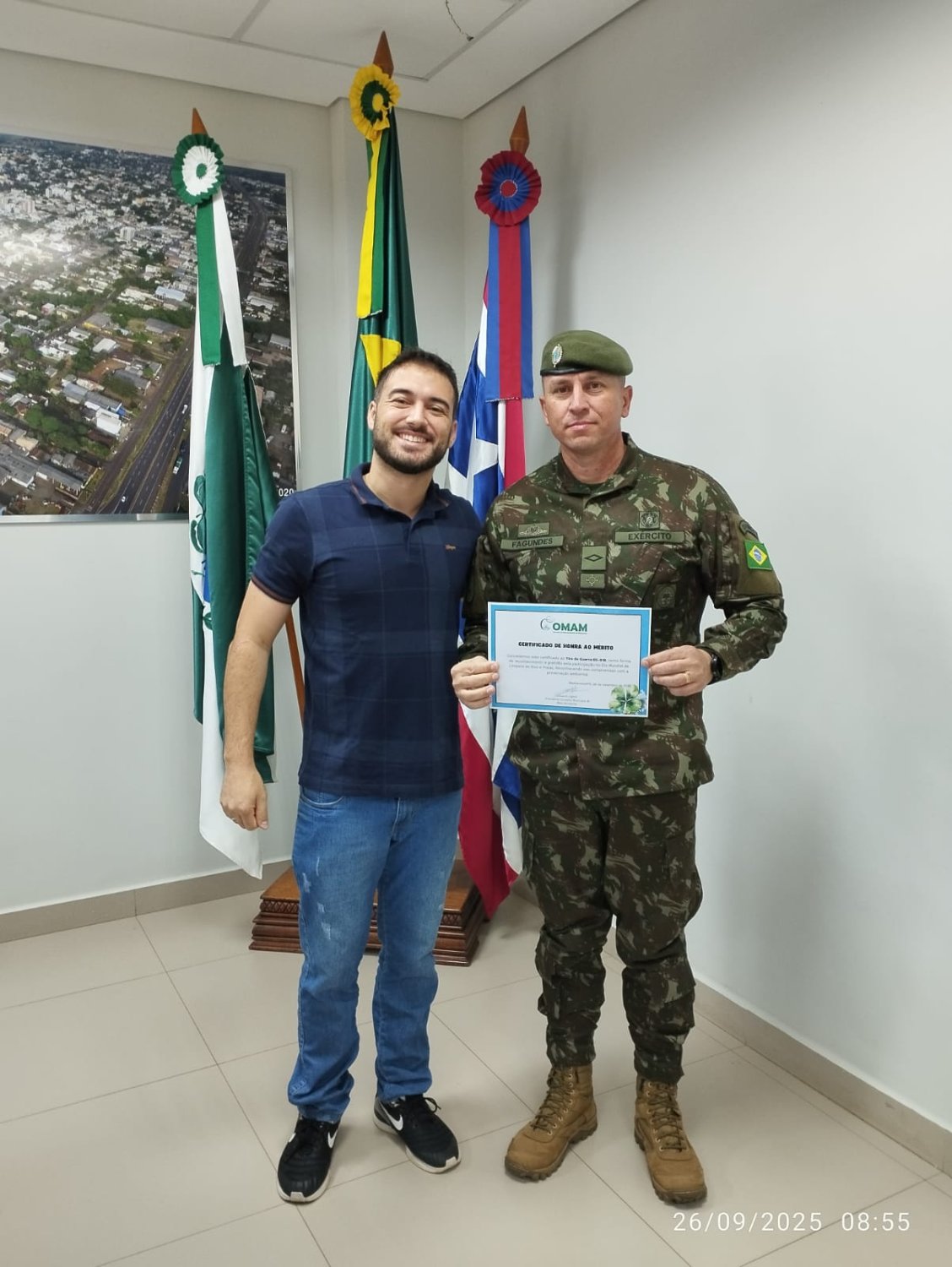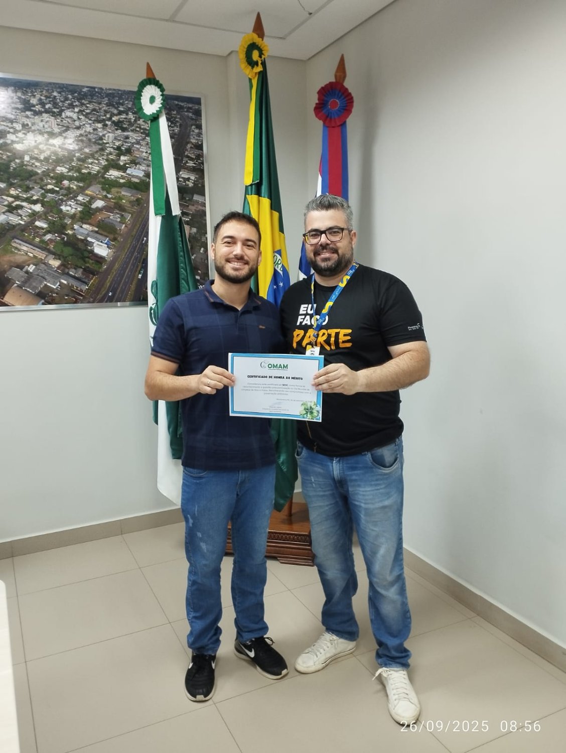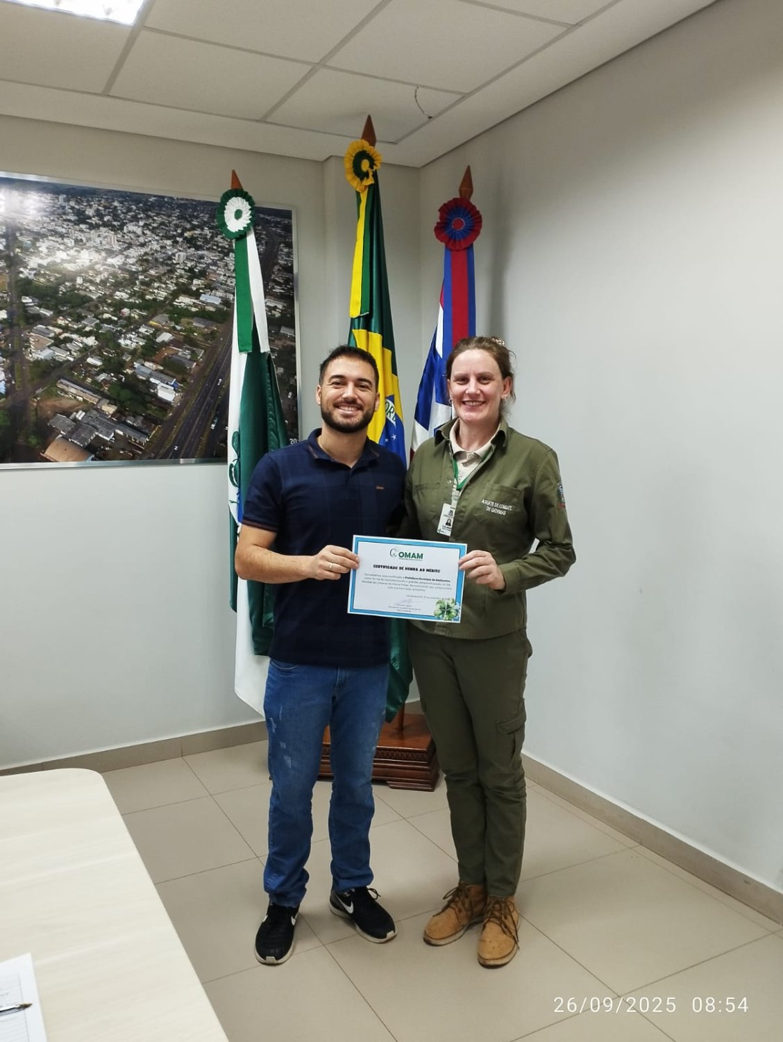 Aproveitando a oportunidade entregou o Certificado de Honra ao Mérito aos participantes do Dia da Limpeza de Rios e Praias (20/09) pela realização da limpeza de trechos dos rios Bolinha e Alegria, e por serviços prestado em prol do Meio Ambiente, sendo eles Tiro de Guerra, Sesc, Rotary Club Medianeira, Centro Universitário UDC, Câmara da Mulher, Prefeitura Municipal, Sanepar, Filhas de Jó e Grupo de Escoteiros Caburé.