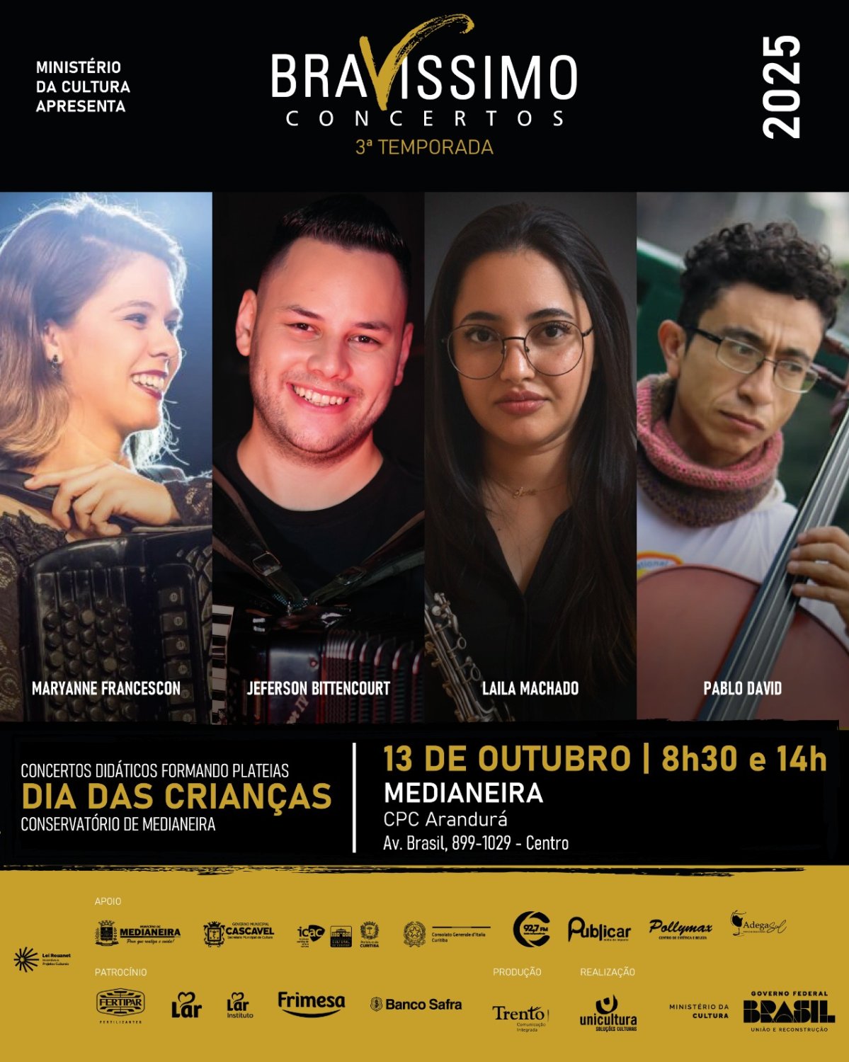 Bravíssimo Concertos, o Conservatório de Medianeira e Secretaria Municipal de Educação e Cultura se unem para presentear os alunos da rede municipal de ensino.