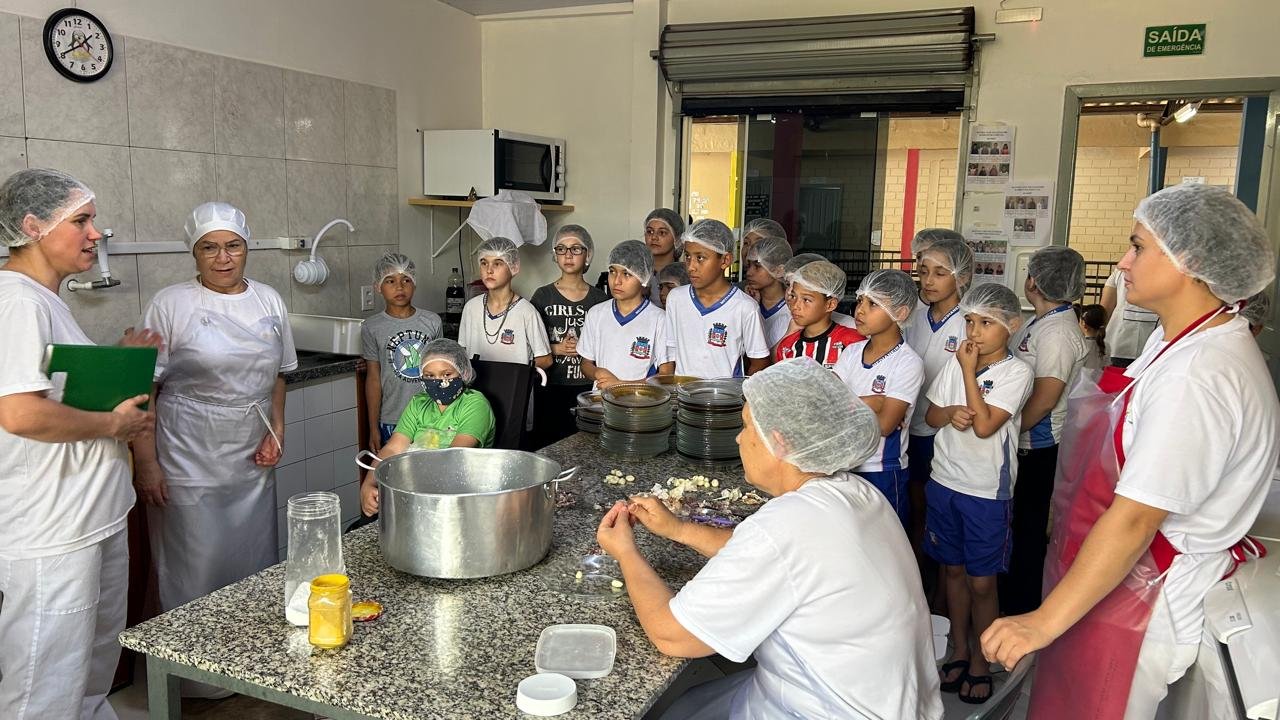 Na sexta-feira, as turmas tiveram a oportunidade de retornar à cozinha escolar, observando como é realizado o pedido dos alimentos e a organização do espaço, orientados pelas cozinheiras da escola, compreendendo, assim, a importância do planejamento e da responsabilidade no uso dos recursos.