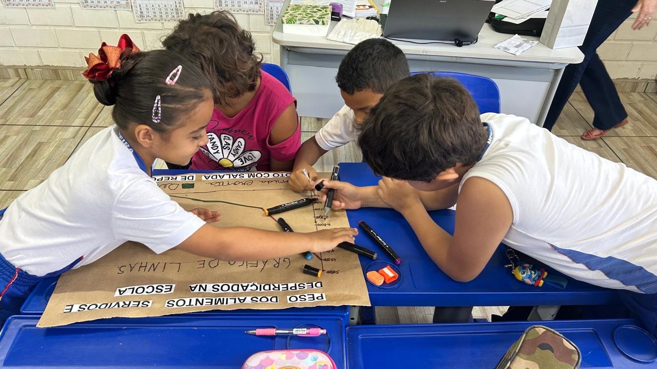 Ao longo da semana, os estudantes coletaram dados referentes à frequência escolar diária, elaborando uma tabela para registrar quantos alunos estiveram presentes em cada dia. Em seguida, visitaram a cozinha da escola, onde puderam pesar a quantidade de alimento preparado para o lanche e, posteriormente, verificar o volume de desperdício.