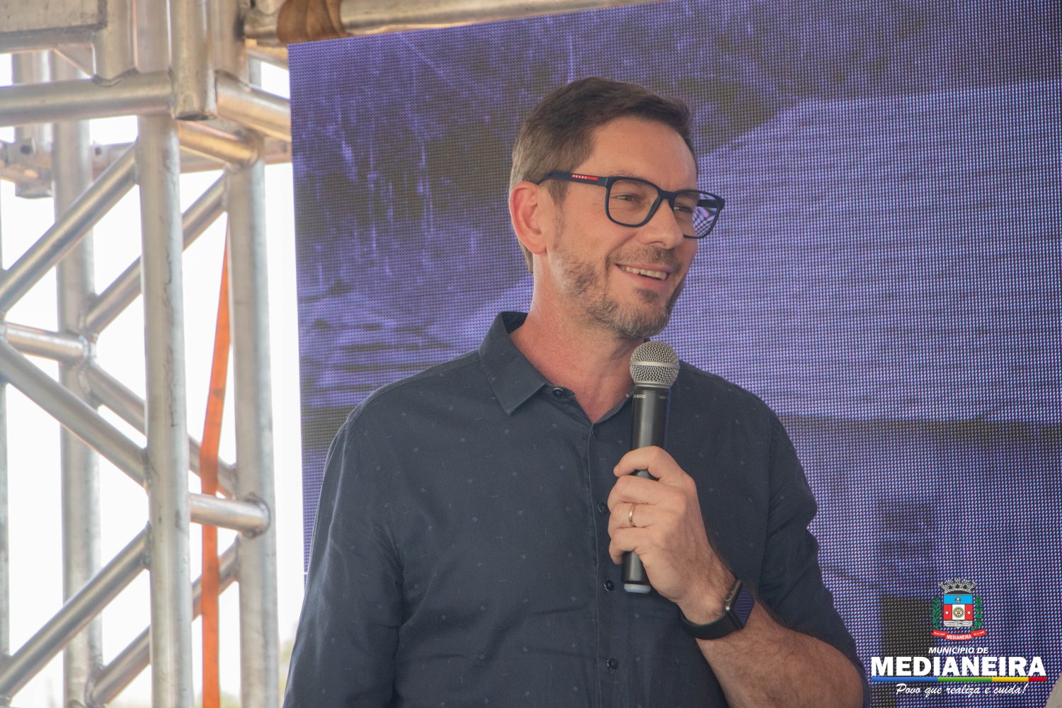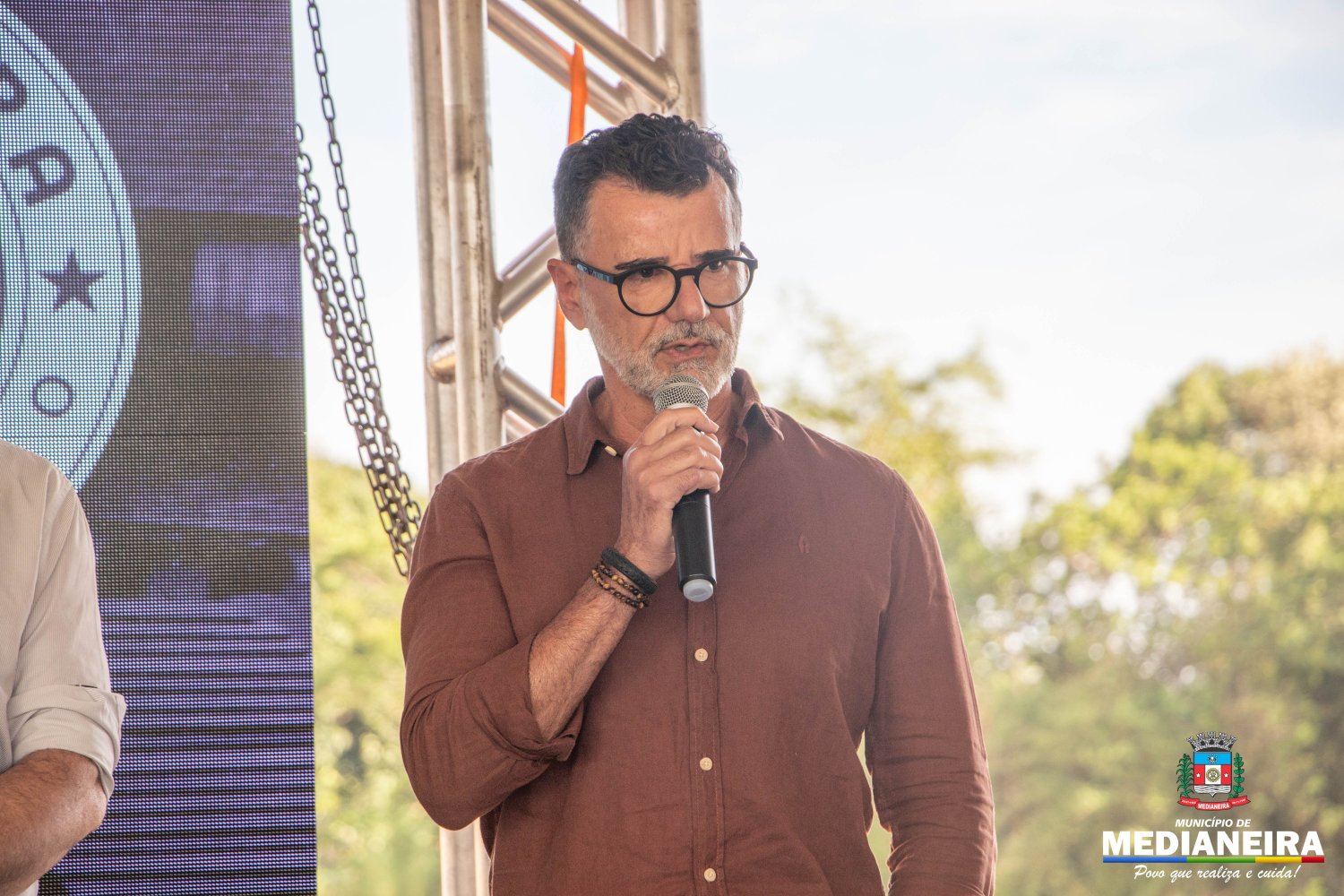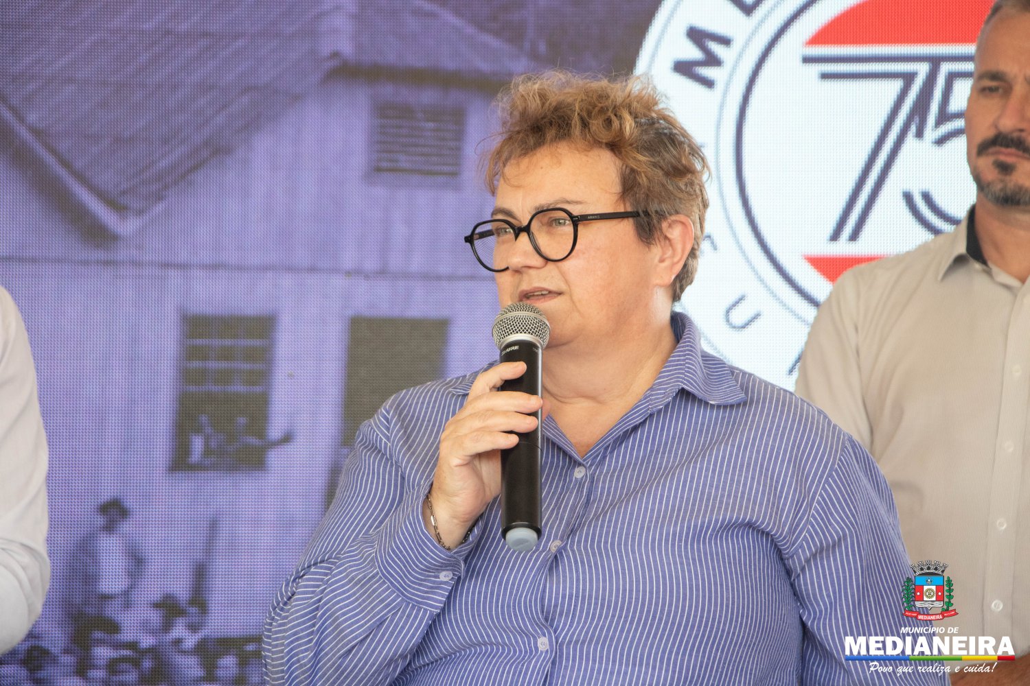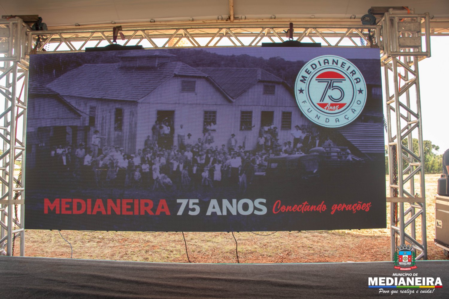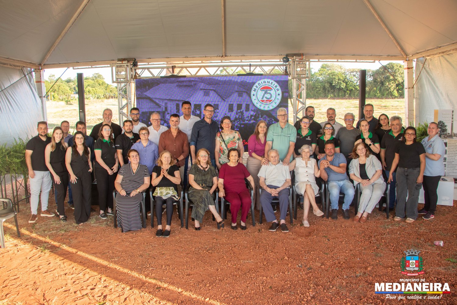 Na tarde da última sexta-feira (24), dia em que Medianeira celebrou 74 anos de fundação, aconteceu a cerimônia de lançamento das comemorações alusivas aos 75 anos de fundação, um marco a ser comemorado em 24 de outubro de 2026. “Até outubro de 2027, ou seja, durante dois anos, para celebrar esta trajetória de 75 anos de conquistas, união e desenvolvimento, será realizado um conjunto de ações históricas, culturais, esportivas, educativas, sociais e turísticas. E a primeira delas foi o lançamento do selo comemorativo do jubileu de diamante. As comemorações visam não apenas resgatar a memória da cidade, mas também projetar seu futuro, valorizando os pioneiros, envolvendo as novas gerações e fortalecendo a identidade medianeirense”, afirmou a secretária de Desenvolvimento Econômico e Diretora interina da Casa da Memória, Márcia Hanzen.