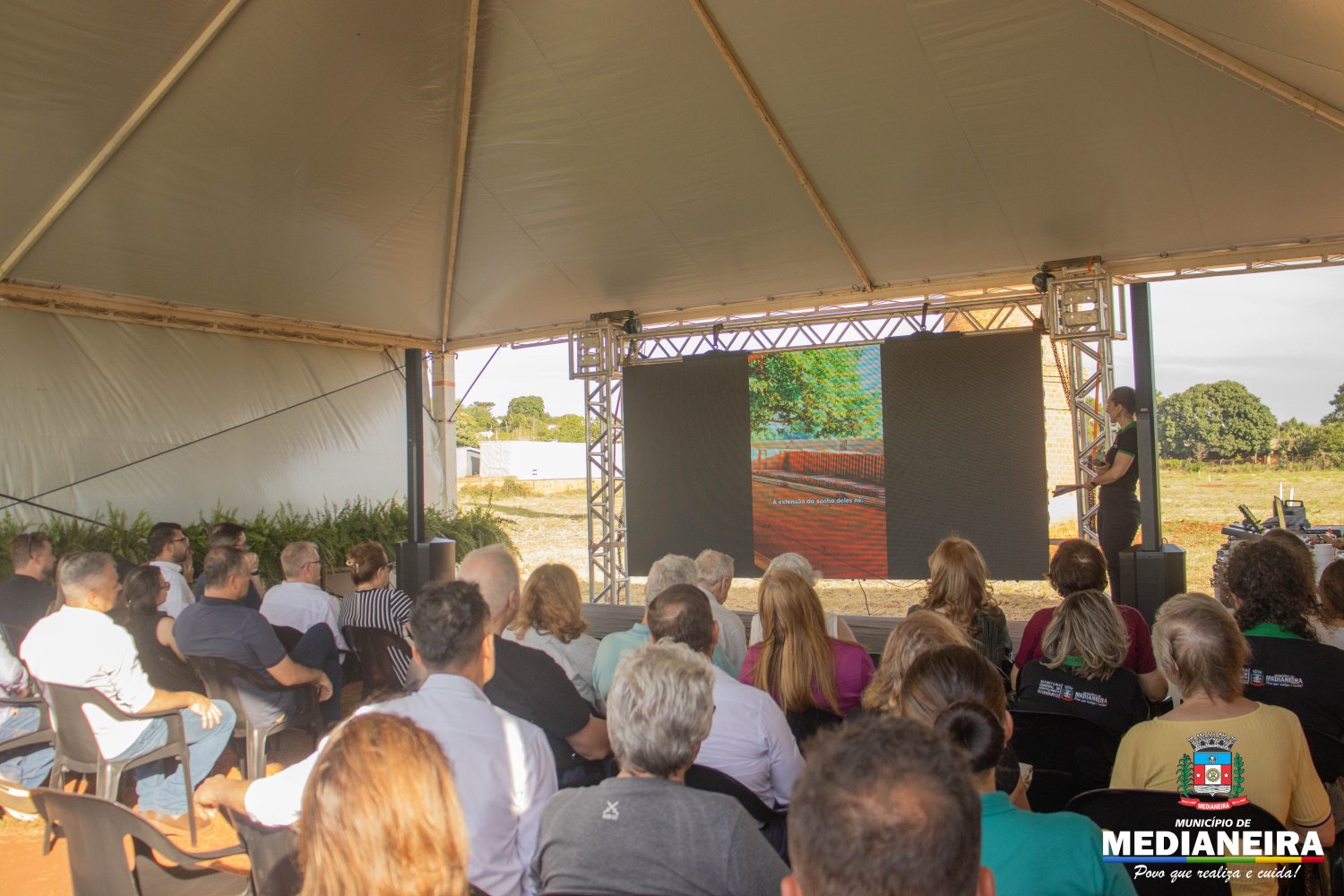 Sandra Simonatto, representando os sócios da Cerâmica Simonatto (Vergílio Moresco, João Mayer, Celso e Nelson Simonatto) em seu discurso emocionado, falou da trajetória de luta das famílias e dos sonhos realizados a partir do trabalho na cerâmica. “O ciclo produtivo da Cerâmica Simonatto se encerrou, mas com o condomínio virá um ciclo de vivência. Talvez cada lote desse vai representar o sonho de outra família, como a chácara representou para as famílias dos sócios, quando vieram de Santa Catarina para Medianeira”, destacou.