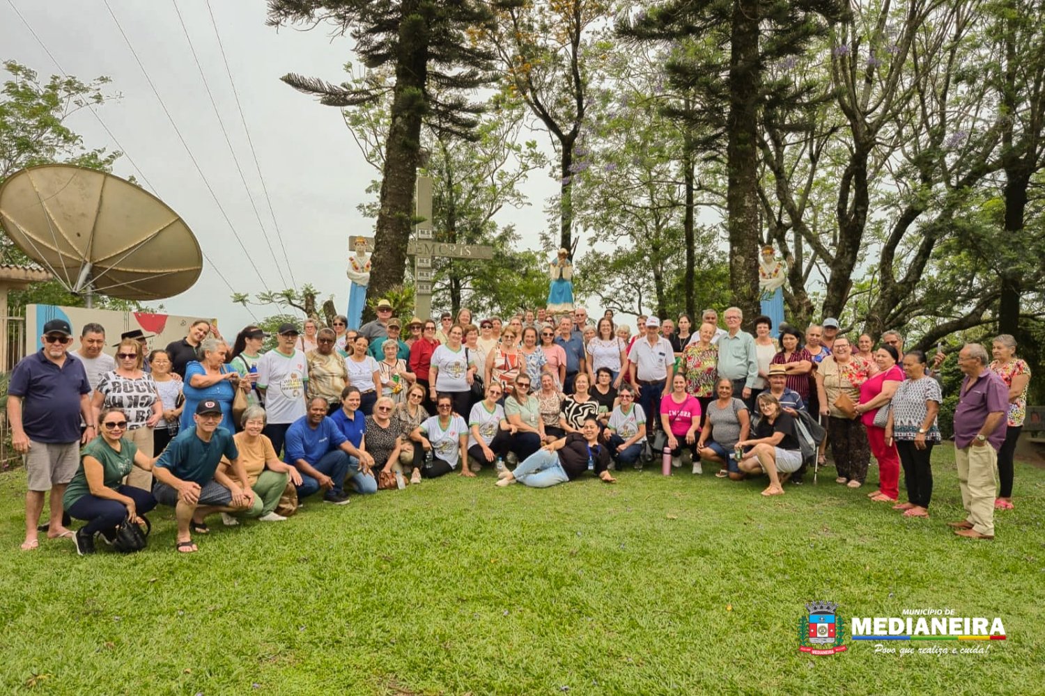 Dando sequência às comemorações, cerca de 220 idosos participaram do 1º City Tour da Pessoa Idosa, com visitas à Casa da Memória, Morro da Salete, Cabanha Rosso e Recanto Olivo.