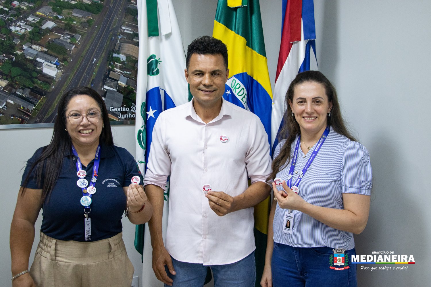 Para marcar o início das ações a secretária de Saúde Rosangela Fiametti Zanchett e a coordenadora da Vigilância em Saúde Cleide Mari entregaram bottons da campanha, uma forma de reforçar a importância e disseminar as ações que acontecerão durante o mês.