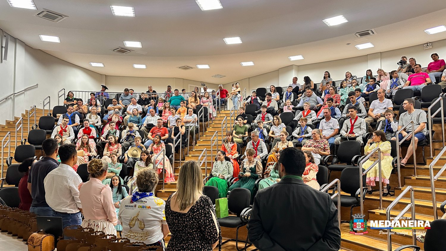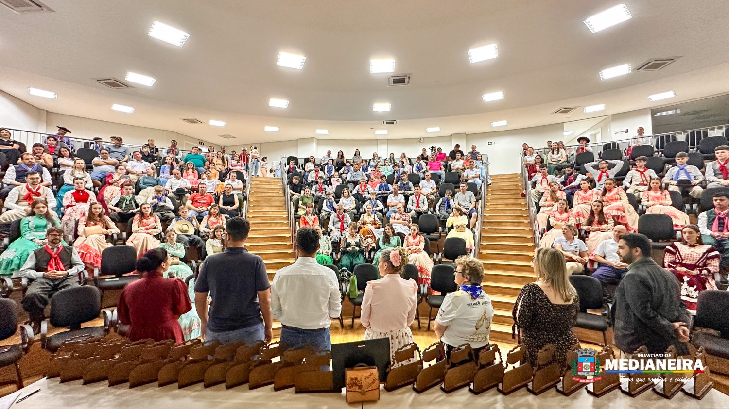 Estiveram presentes o prefeito Antonio França, o vereador Eduardo Schulz, a secretária de Desenvolvimento Econômico Marcia Hanzen, a secretária de Educação e Cultura Rosiane Tonelli, a patroa do CTG Fabiane Poletto Bersch, além da diretoria, professores, prendas e peões de todas as categorias.