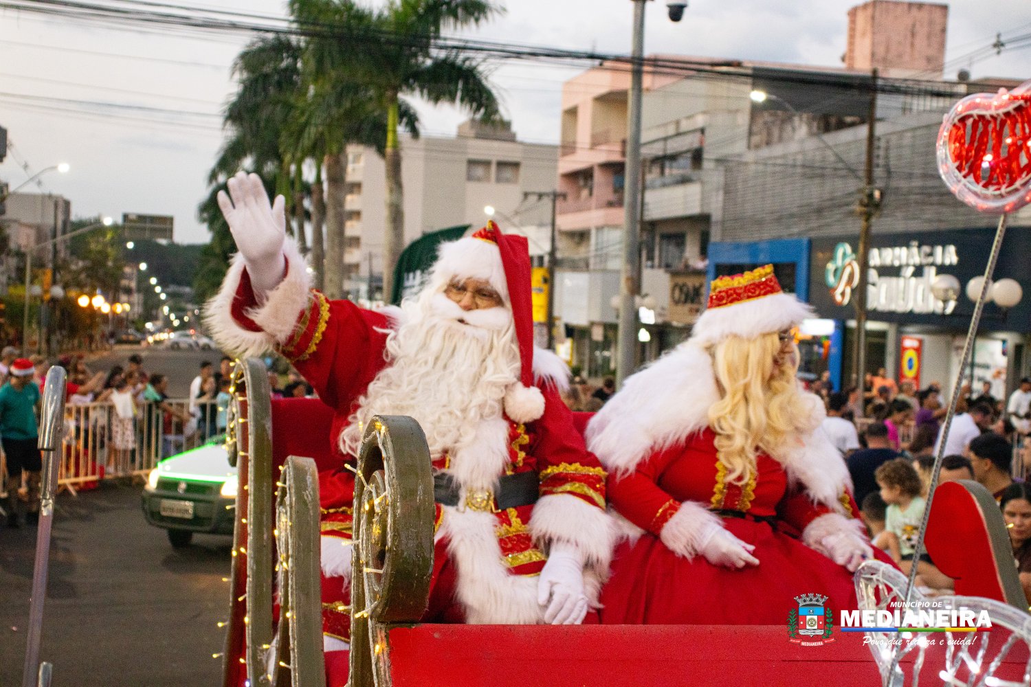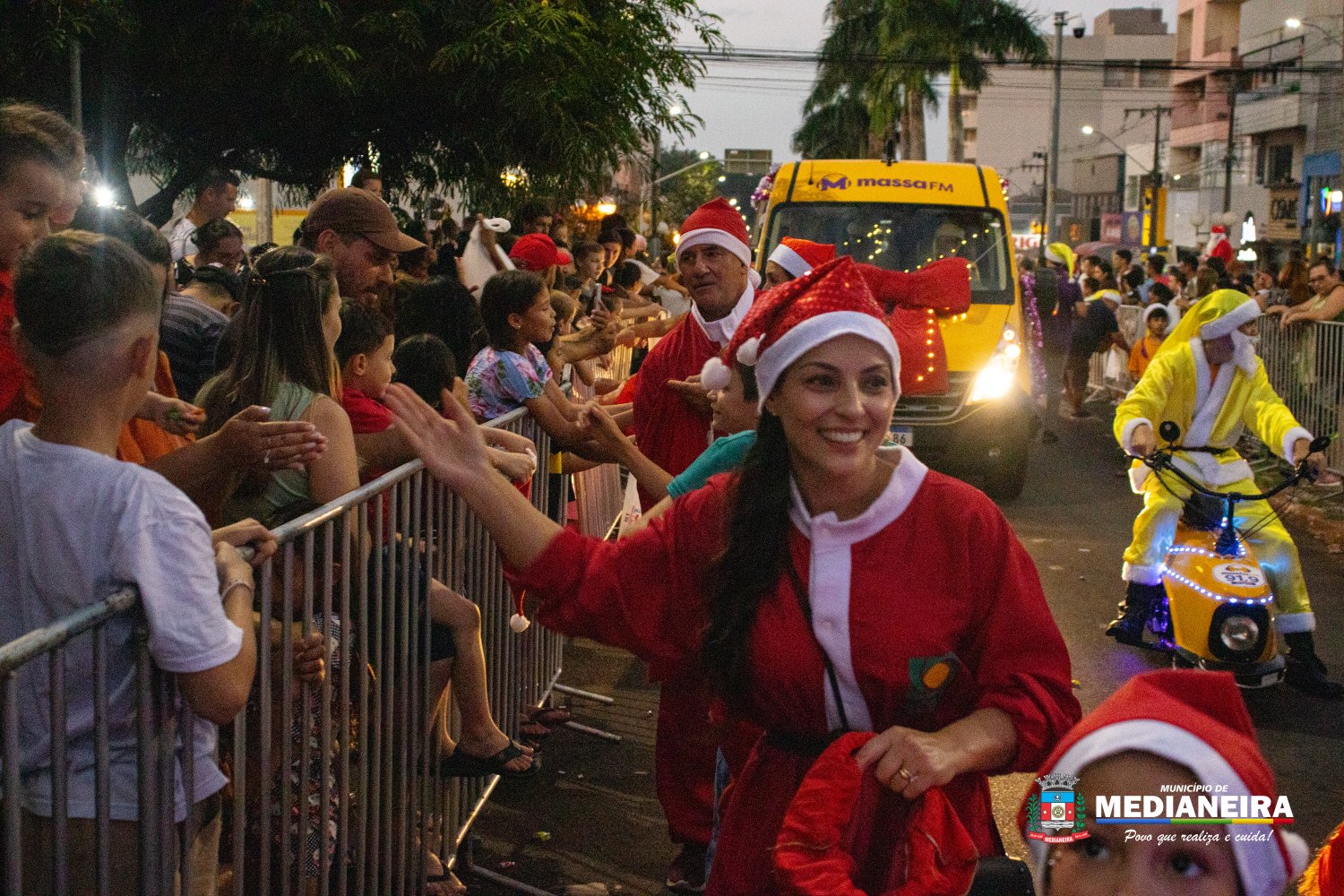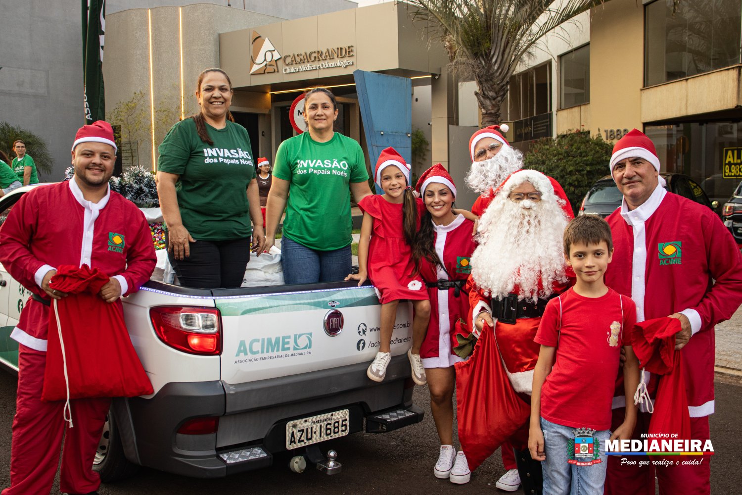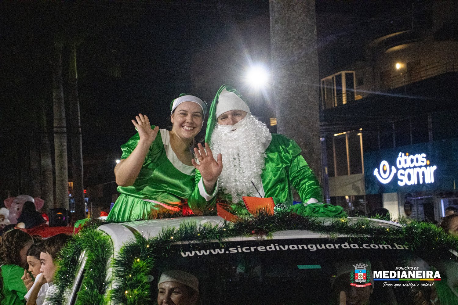 A noite do último sábado (06) foi marcada por alegria e cores natalinas em Medianeira, com a já tradicional Invasão dos Papais e Mamães Noéis. A Avenida Brasília ficou lotada de famílias que foram prestigiar as empresas e entidades participantes da ação.
