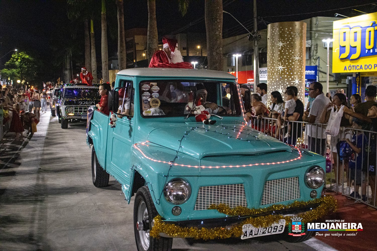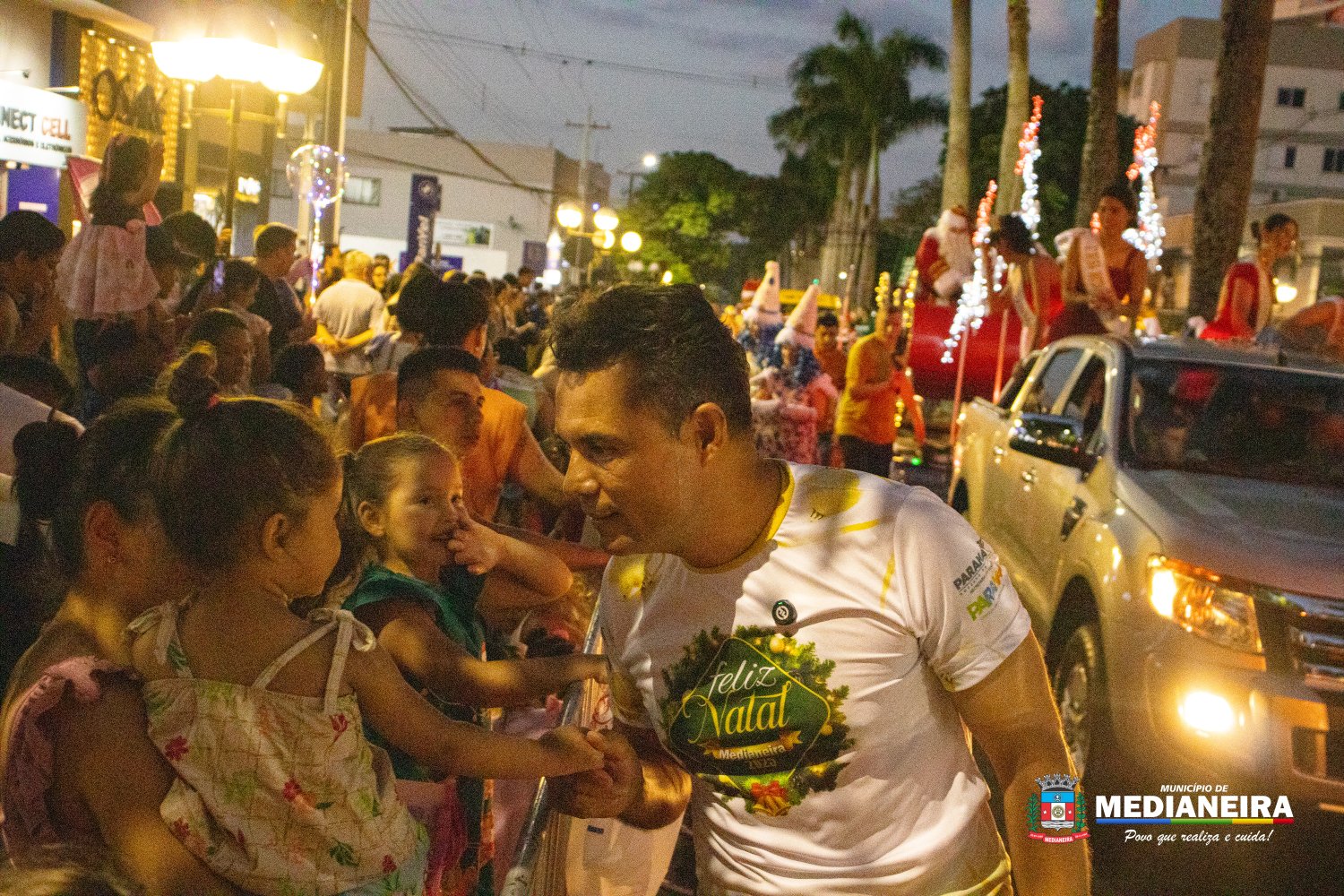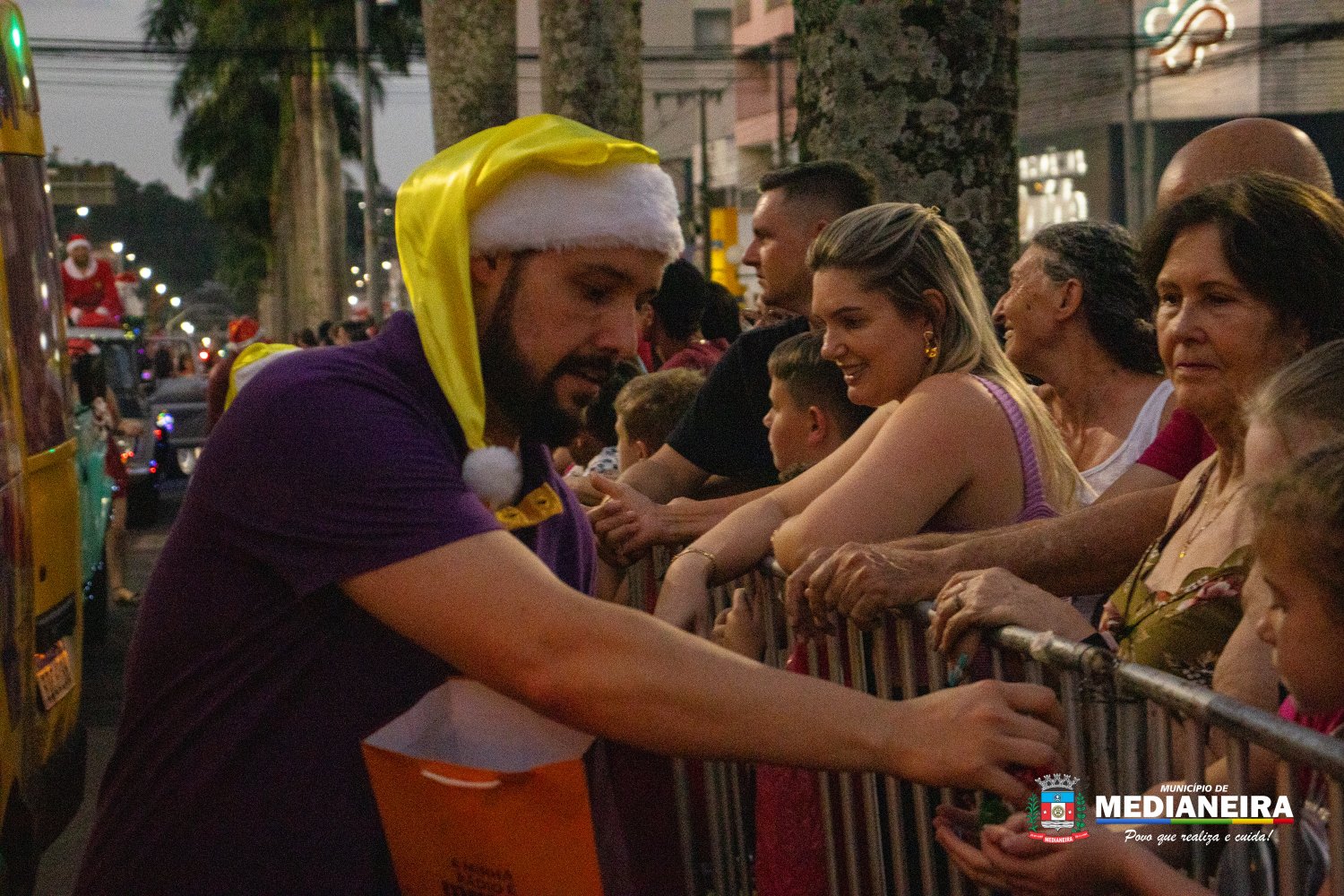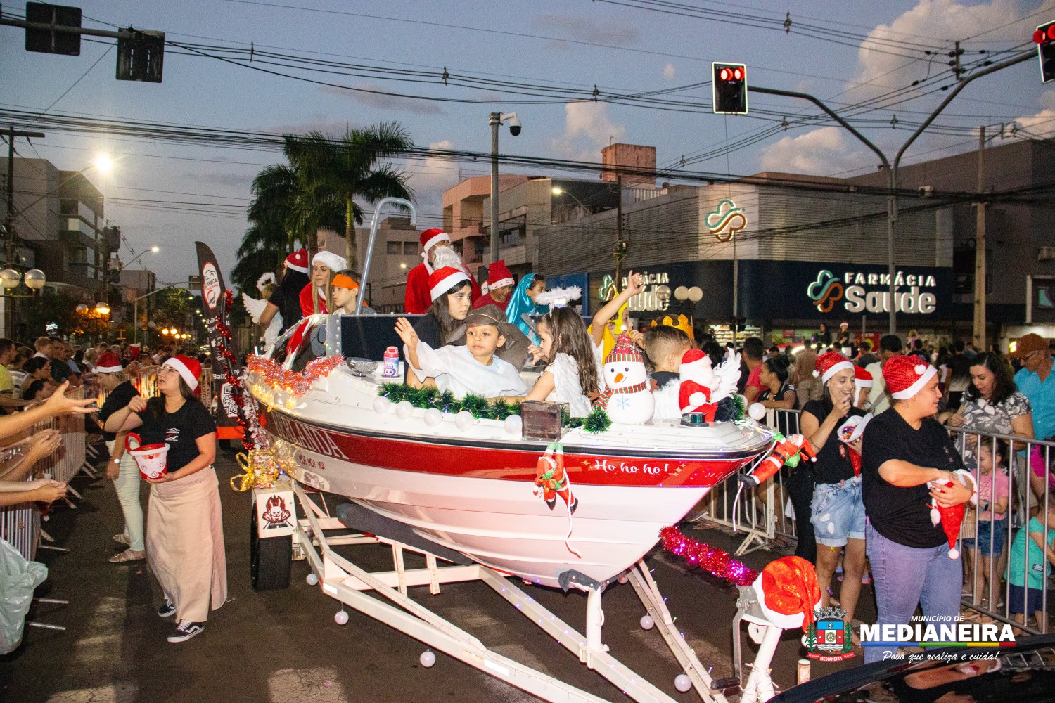 A noite do último sábado (06) foi marcada por alegria e cores natalinas em Medianeira, com a já tradicional Invasão dos Papais e Mamães Noéis. A Avenida Brasília ficou lotada de famílias que foram prestigiar as empresas e entidades participantes da ação.