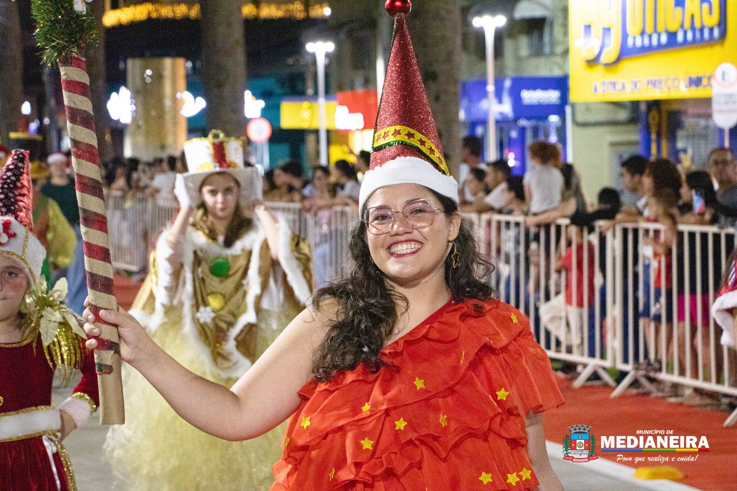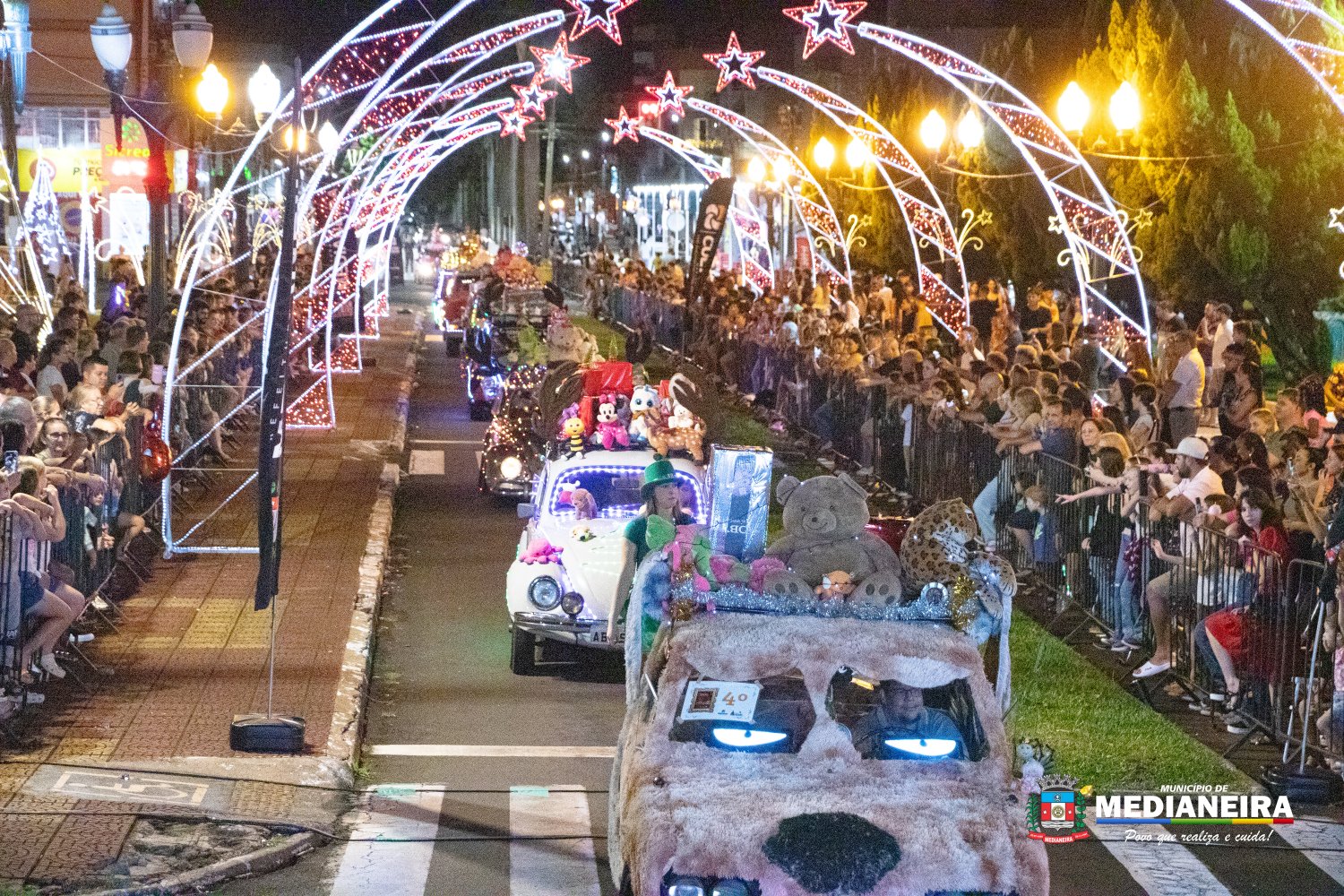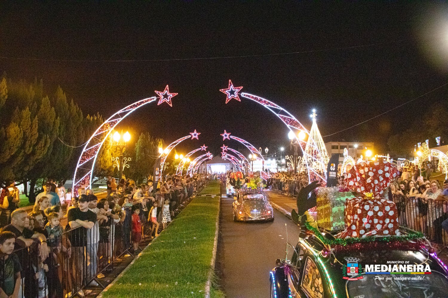 A Avenida Brasília se transformou em uma grande passarela de luzes, cores e criatividade durante a 2ª Parada de Natal de Medianeira. O desfile de carros alegóricos levou encanto natalino às ruas e reuniu um grande público na Praça Ângelo Darolt, que foi palco desse momento especial de celebração.
