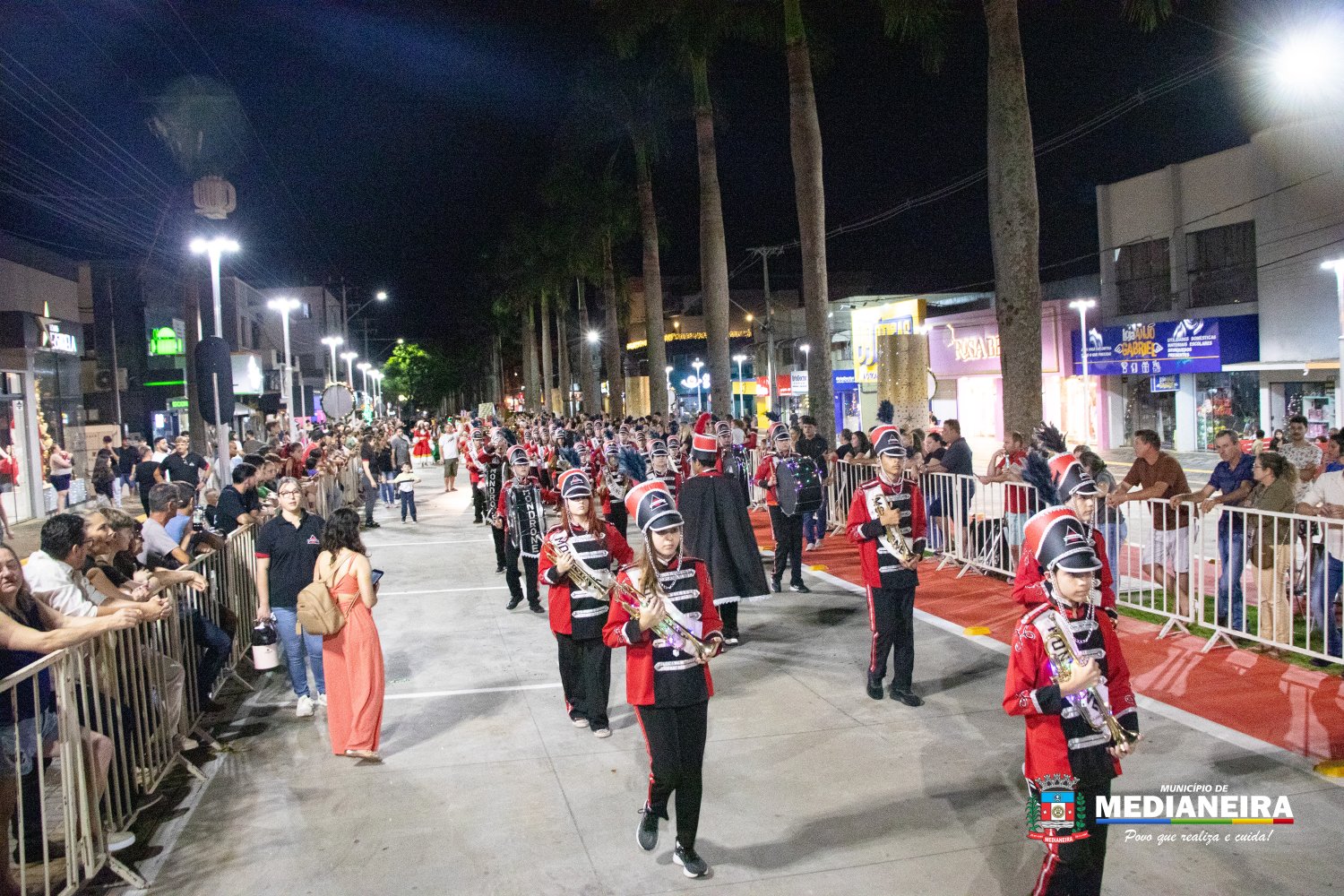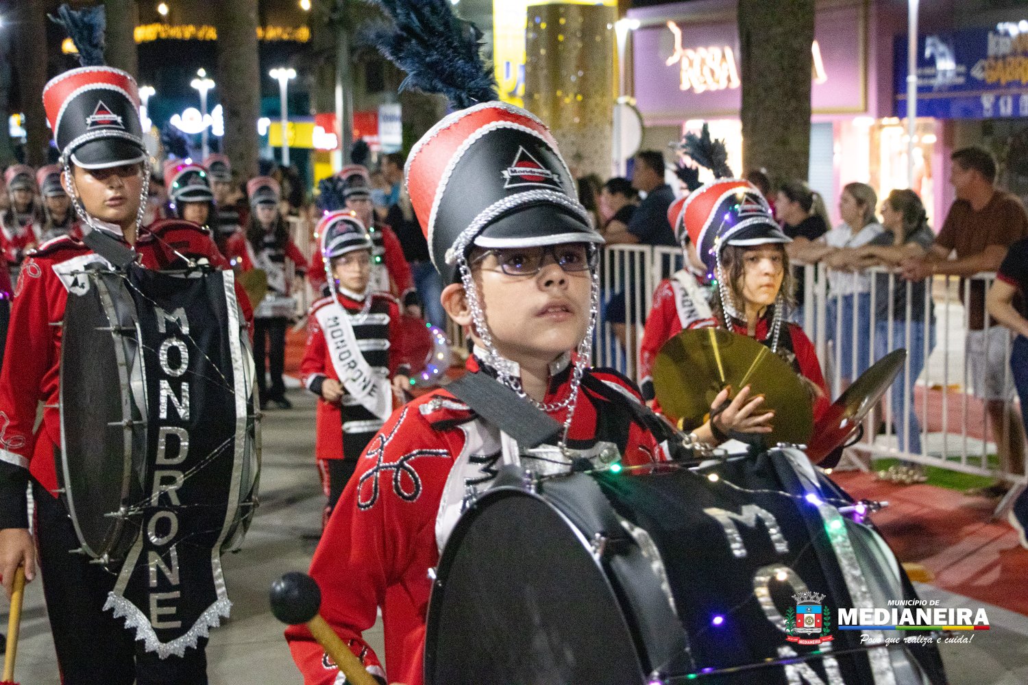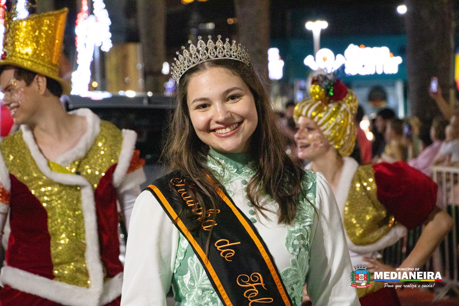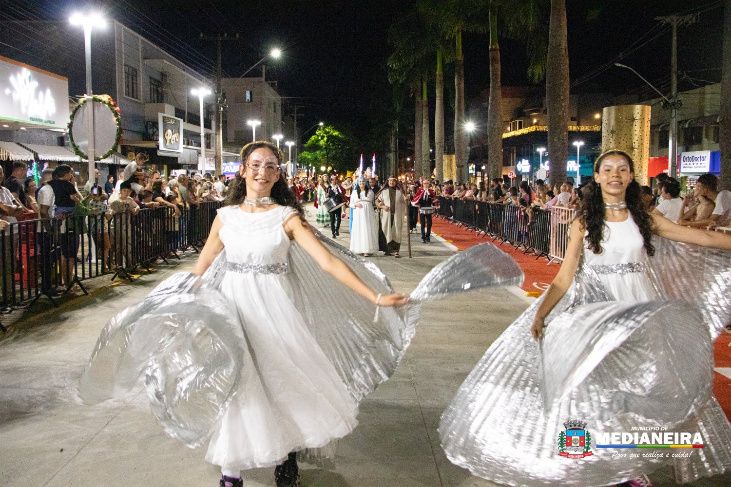 A abertura do desfile ficou por conta do Papai Noel e da Mamãe Noel do Departamento de Cultura de Medianeira, acompanhados por personagens como presentes, bonecos, fadas, duendes, bailarinas, além de Maria e José, em referência ao nascimento do Menino Jesus. A Fanfarra do Mondrone marcou o início das apresentações, dando ritmo e energia à noite.