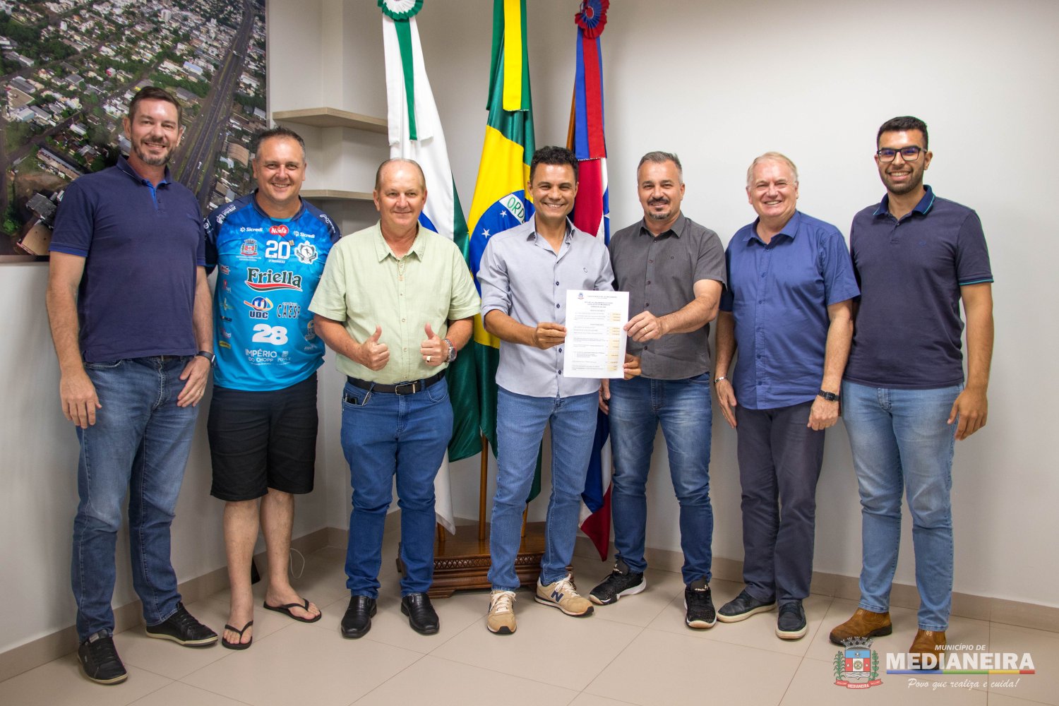 A entrega foi realizada pelo presidente da Câmara Marcos Berta, acompanhado dos vereadores Adriano Both, Eduardo Schulz, Juarez Demarchi e Sebastião Antonio.