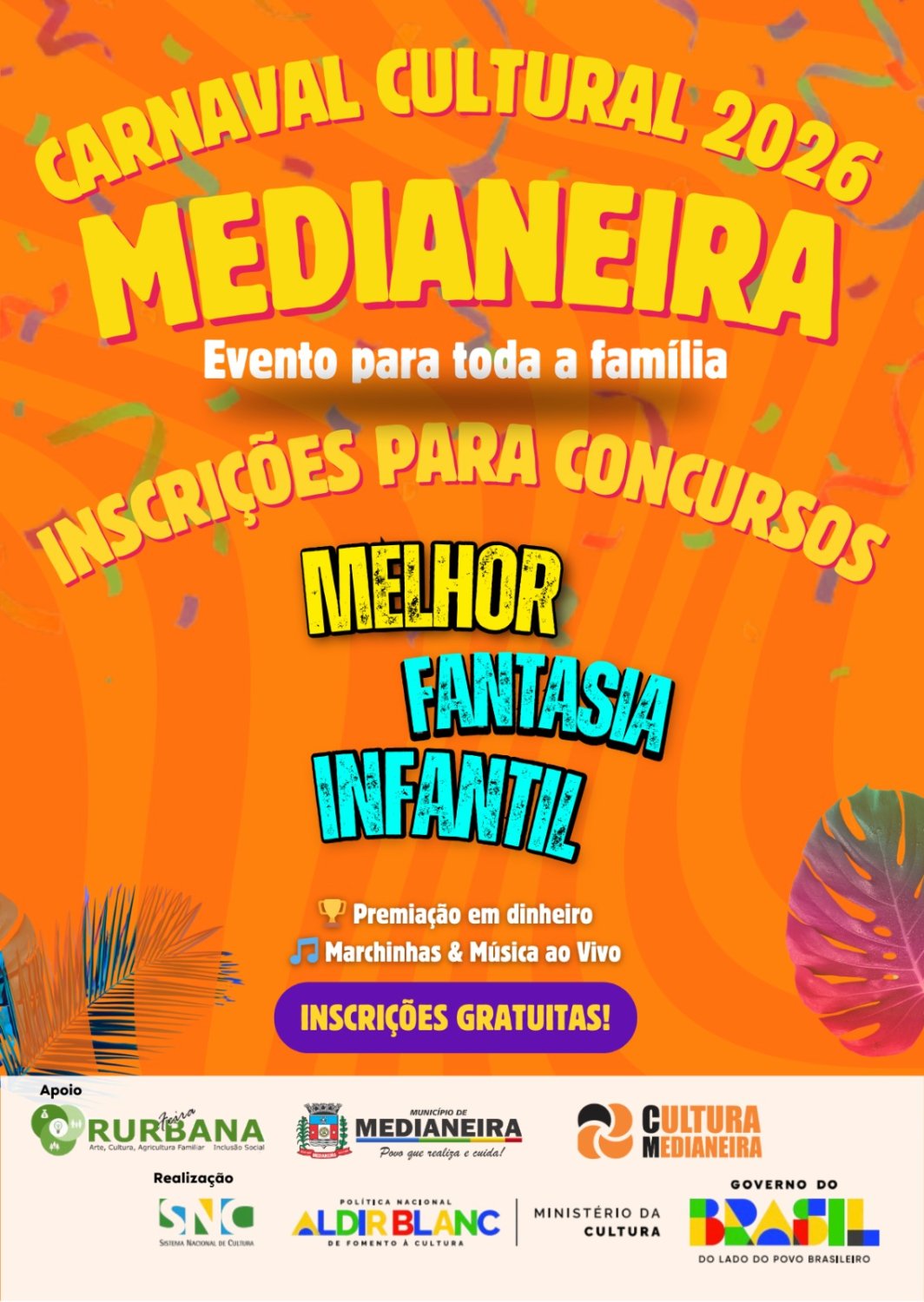 A Prefeitura de Medianeira promove, no dia 16 de fevereiro, a partir das 18 horas, o Carnaval Cultural, no estacionamento da Prefeitura. O evento é aberto ao público e foi preparado para proporcionar uma noite de alegria, música e integração para toda a comunidade.