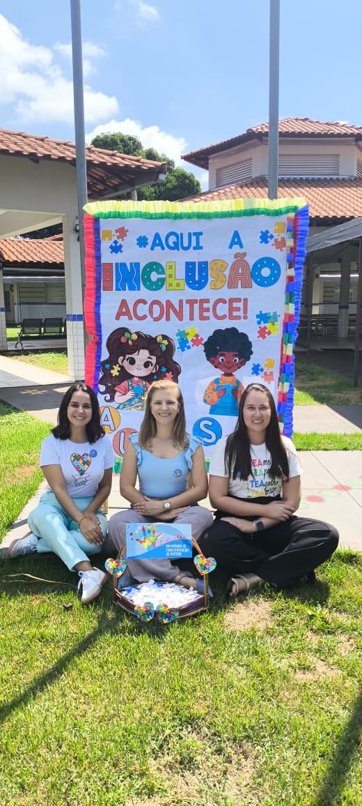 Na hora do lanche foi feita a entrega de bottons personalizados aos funcionários da escola e realizada uma conversa sobre a importância da educação inclusiva e o papel de cada um na construção de um ambiente acolhedor, respeitoso e que valorize as diferenças, garantindo o desenvolvimento e a participação de todas as crianças.