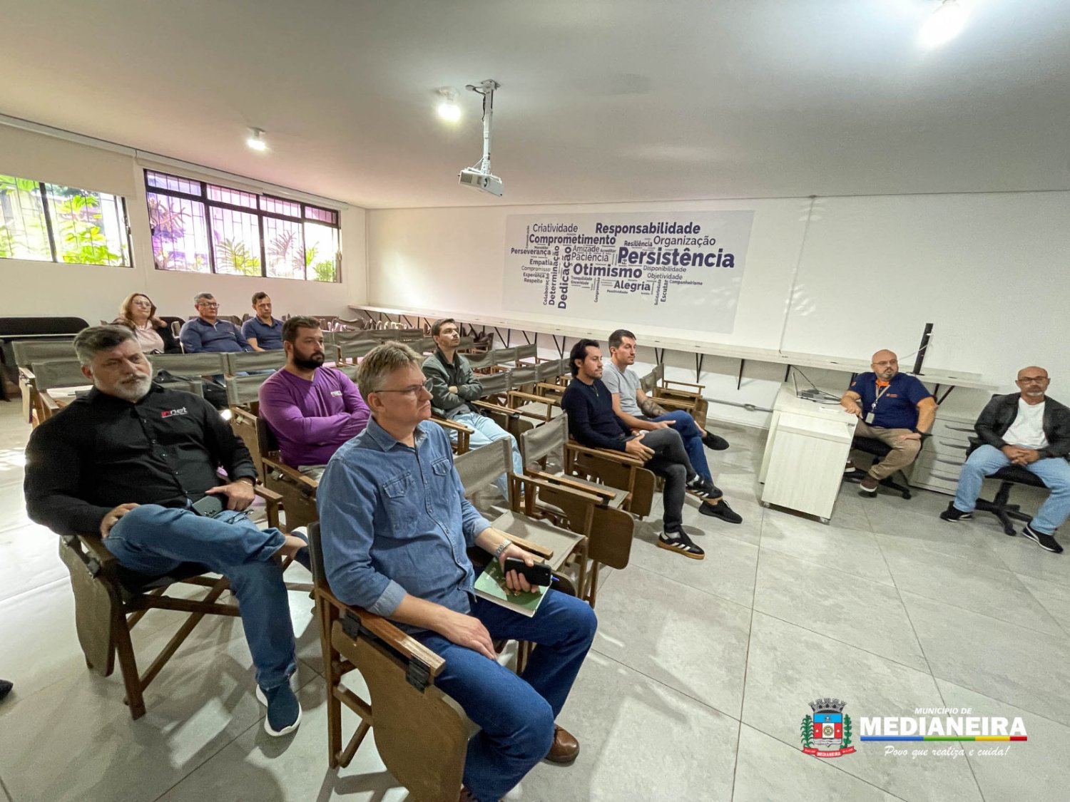 A reunião contou com a presença do vice-prefeito Evandro Mees, dos vereadores Eduardo Schulz e Sebastião Antonio, da secretária de Administração e Planejamento, Solange de Lima, do secretário de Obras, Isaias Benjamim, do diretor do Procon Medianeira, Silvio Lupschinski, do gerente da Área Técnica de Compartilhamento de Estruturas da COPEL, Rafael Buckoski, do supervisor de Compartilhamento Oeste/Sudoeste, Wellington Tondo, além de representantes das empresas provedoras de internet.