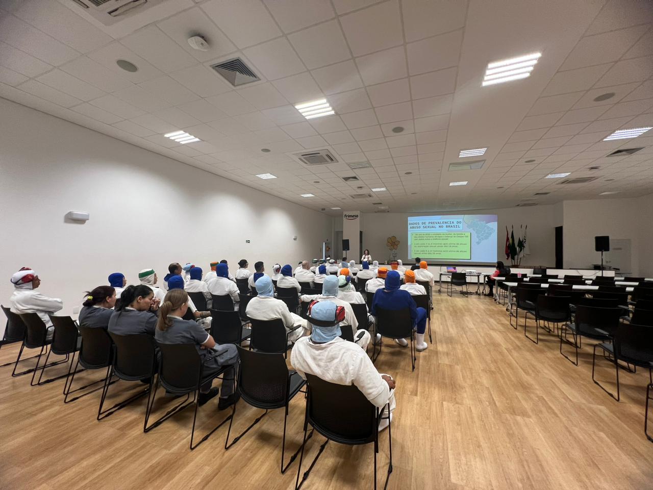 Ao final, colaboradores puderam tirar suas dúvidas sobre como agir ao tomar conhecimento de um caso de violência sexual e a importância de não revitimizar a criança e o adolescente ao ter que relatar várias vezes sobre a situação.