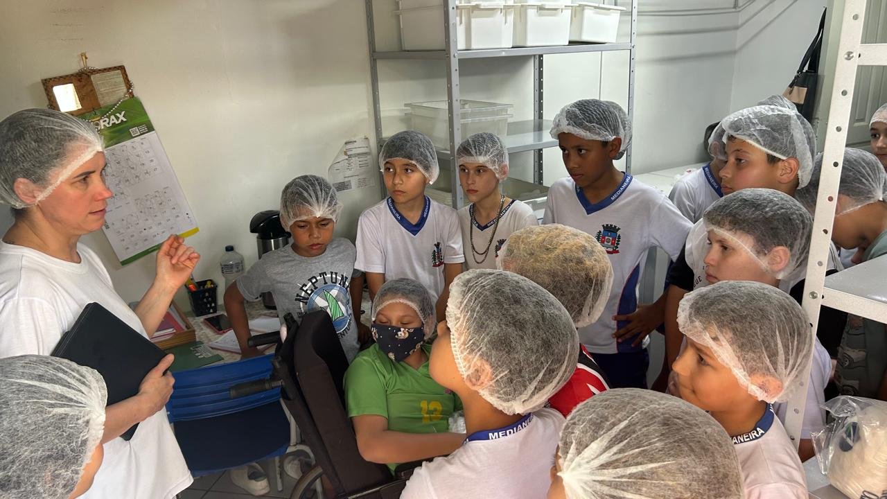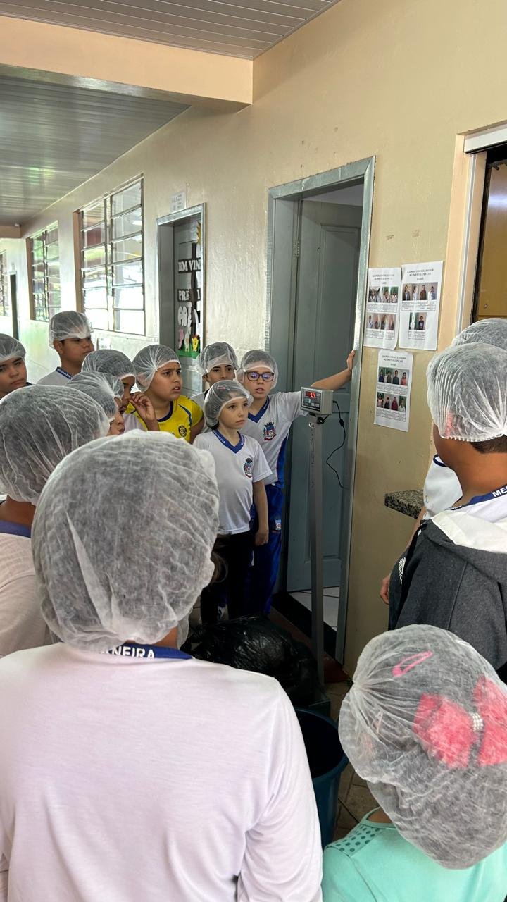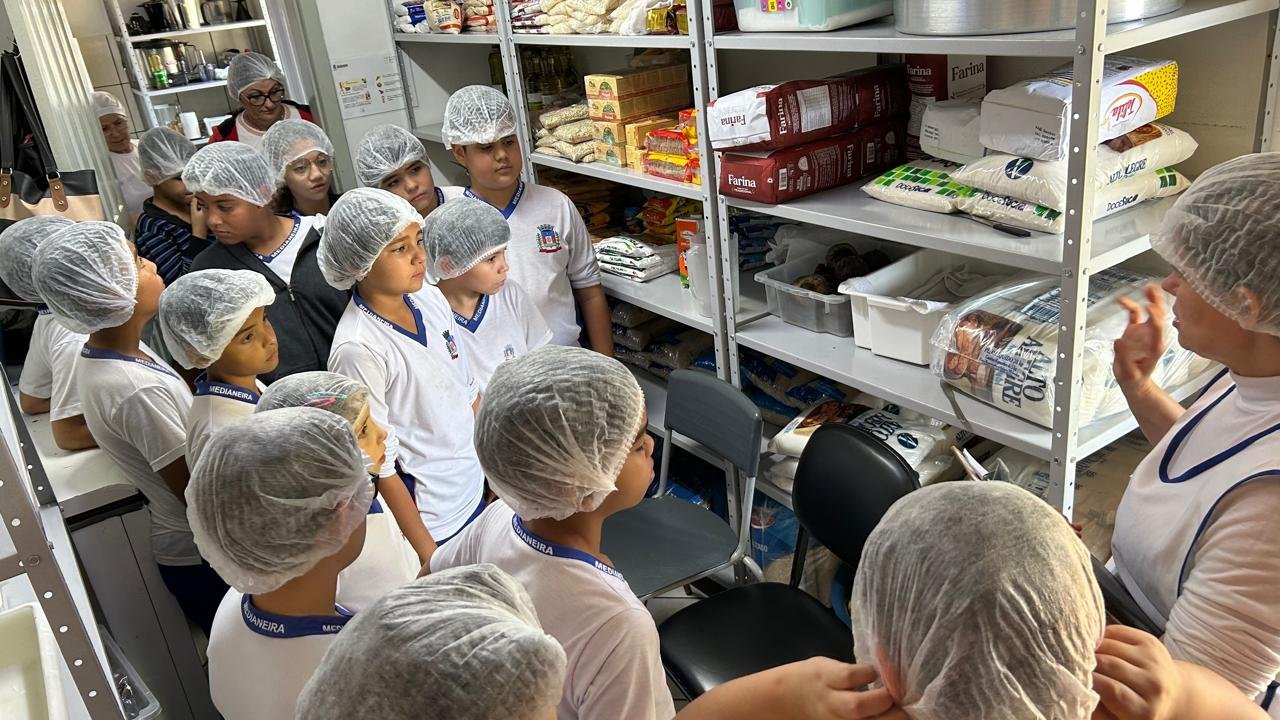 Na sexta-feira, as turmas tiveram a oportunidade de retornar à cozinha escolar, observando como é realizado o pedido dos alimentos e a organização do espaço, orientados pelas cozinheiras da escola, compreendendo, assim, a importância do planejamento e da responsabilidade no uso dos recursos.