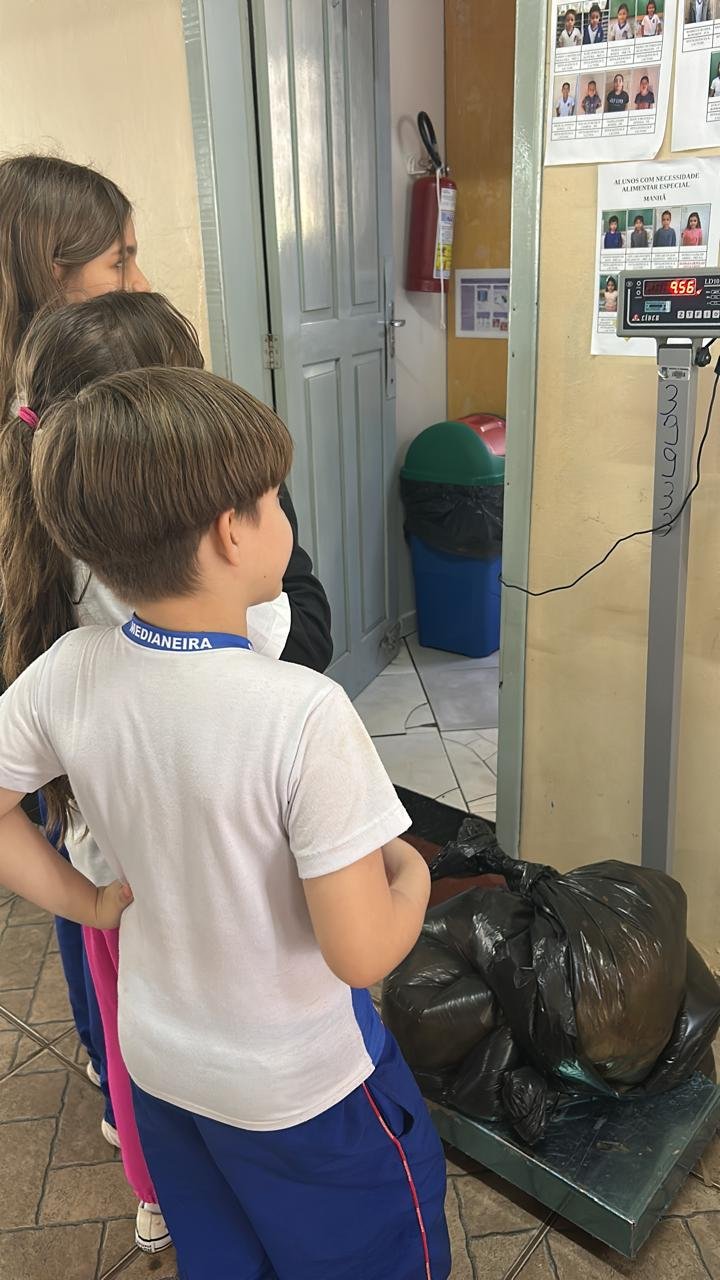 Ao longo da semana, os estudantes coletaram dados referentes à frequência escolar diária, elaborando uma tabela para registrar quantos alunos estiveram presentes em cada dia. Em seguida, visitaram a cozinha da escola, onde puderam pesar a quantidade de alimento preparado para o lanche e, posteriormente, verificar o volume de desperdício.