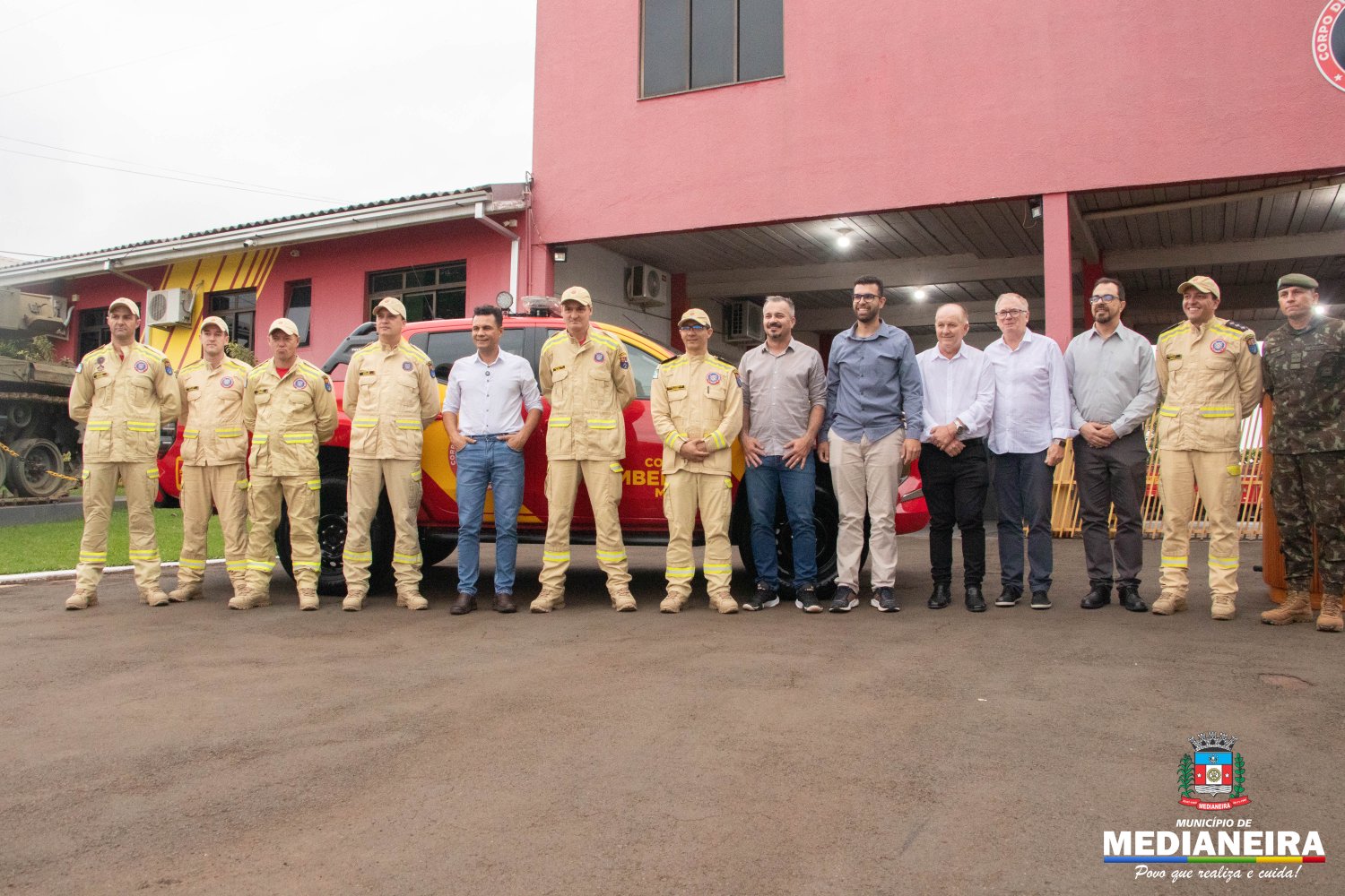 Corpo de Bombeiros de Medianeira recebe nova caminhonete para reforço das operações