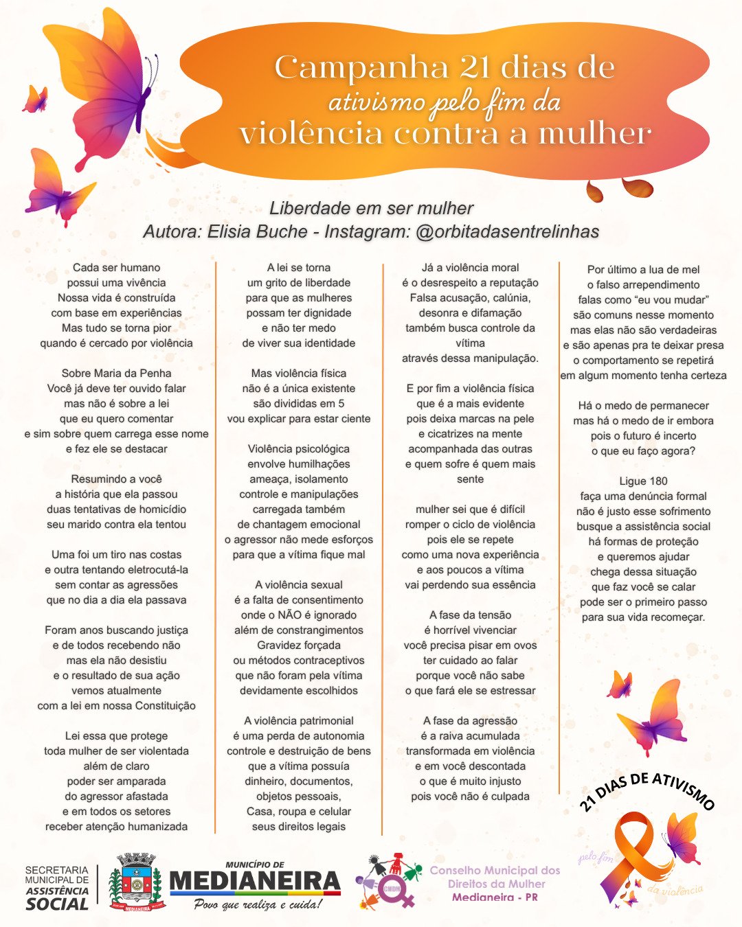 A poesia “Liberdade em ser mulher”, escrita por Elisia Buche especialmente para a campanha.