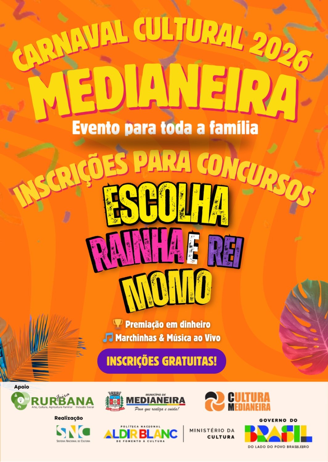 A Prefeitura de Medianeira promove, no dia 16 de fevereiro, a partir das 18 horas, o Carnaval Cultural, no estacionamento da Prefeitura. O evento é aberto ao público e foi preparado para proporcionar uma noite de alegria, música e integração para toda a comunidade.